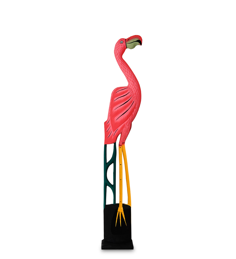 Статуэтка «Розовый фламинго» высотой 80 сантиметров погружает нас в мир экзотической природы азиатского региона. Ее сделали мастера из Индонезии, а они знают толк в розовых фламинго! Эти птицы обитают на берегах, и живут стаями; иногда стая насчитывает тысячи птиц, и тем, кто видел, как фламинго закрывают небо во время взлета, очень повезло.