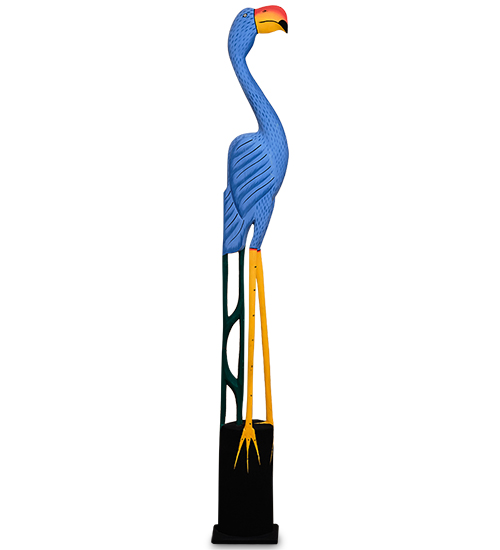 Очень высокая фигурка «Голубой фламинго» (ее высота - 150 сантиметров) необычна не только ростом птицы, но и ее расцветкой. О розовых фламинго все слышали, а некоторым даже повезло наблюдать их жизнь в огромных стаях около водоемов. Голубой фламинго либо не встречается вообще, либо огромная редкость. Так или иначе, он уже здесь и нам следует его как следует описать.