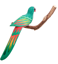 Статуэтка «Птица на ветке» очень похожа на зеленого попугая. Фигурка вырезана из дерева, а ее авторы – индонезийские ремесленники, чьи сувениры в последнее время пользуются большим спросом.