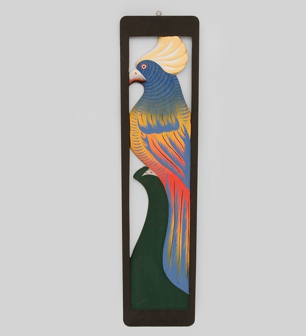 В последнее время вновь вернулась мода оформлять стены квартир и офисных помещений не только при помощи репродукций и постеров, но и при помощи деревянных панно, как абстрактными, так и реалистичными. Индонезийское панно «Королевский попугай» в черной рамке изображает экзотическую птицу, сидящую на зеленой жердочке, ярко и выразительно.