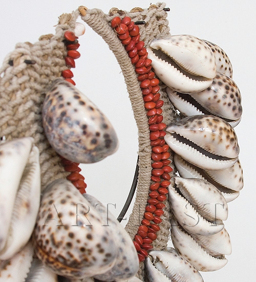 Ожерелье аборигена, которые мы предлагаем на этой странице, имеет длину 70 сантиметров, и вряд ли заменит колье, но зато может украсить внешний вид комнаты, обставленной в необычном, экзотическом стиле. Колье сделано из шпагата, его внутренняя часть покрашена в красный цвет. Вся поверхность ожерелья, напоминающая мантию, выложена необычными предметами (скорее всего, это ракушки). Ожерелье продается вместе с подставкой.