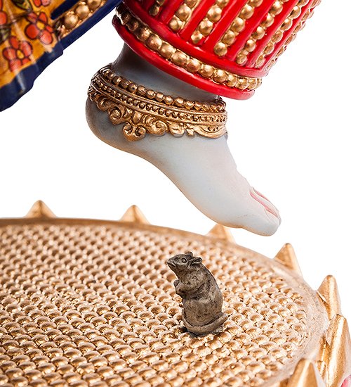 Представляем: индийский бог Ганеш. Он имеет четыре руки, и танцует от радости. Его первая миссия – поддерживать благополучие людей, вторая – не давать им совершать безрассудные поступки.