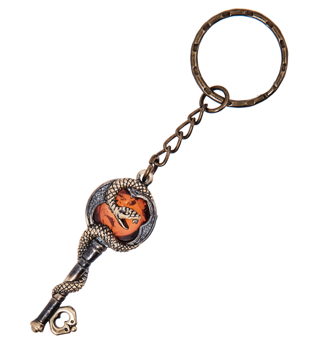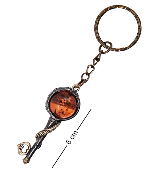 AM- 047 Брелок «Змея Ключик» (латунь, янтарь)