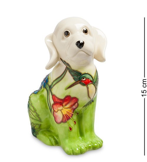 Копилка «Собака», сделанная из фарфора, поможет вам собрать необходимую сумму на крупную покупку и поможет украсить интерьер: при ее создании художники проявили фантазию, и раскра-сили четвероногого друга весьма необычным способом. У собаки белая голова, а тело покрыто ковром зелени. На груди собаки – маленькая птичка колибри, вьющаяся вокруг большого красного цветка. Собака преданно и жалобно смотрит вперед: киньте в нее монетку, и ей сразу станет веселее.