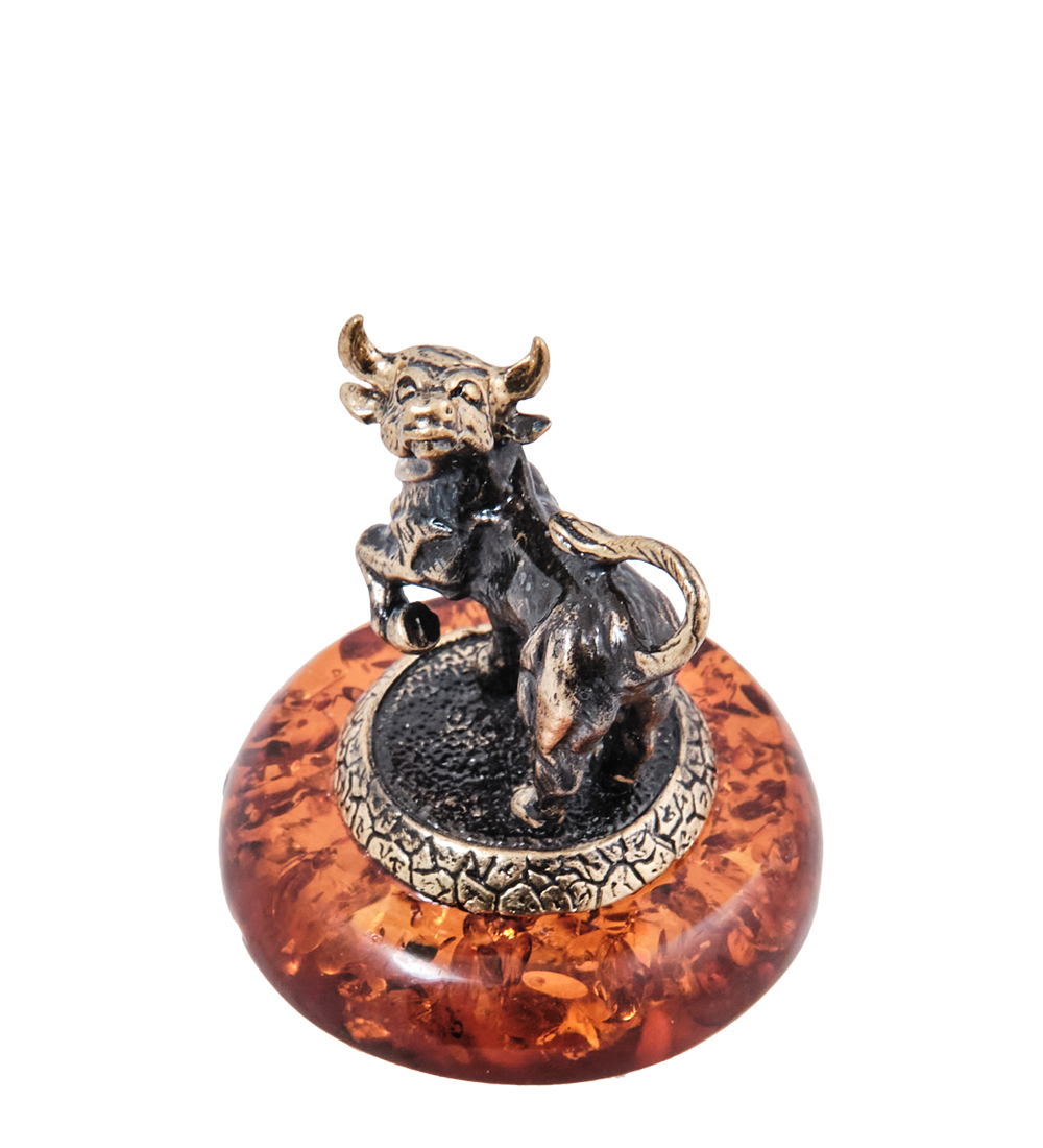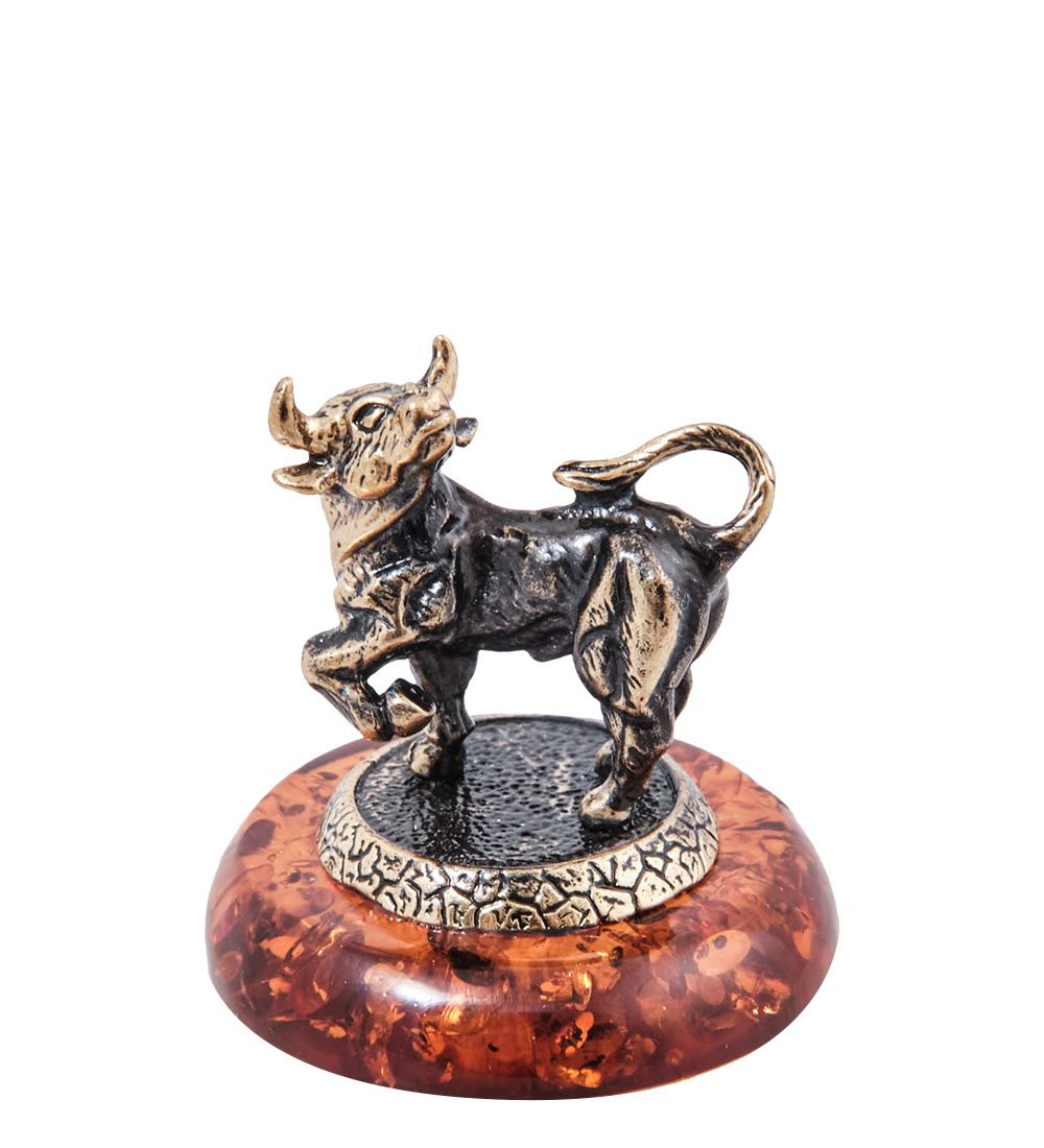 AM- 567 Фигурка «Знак зодиака - Телец» (латунь, янтарь)
