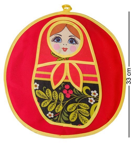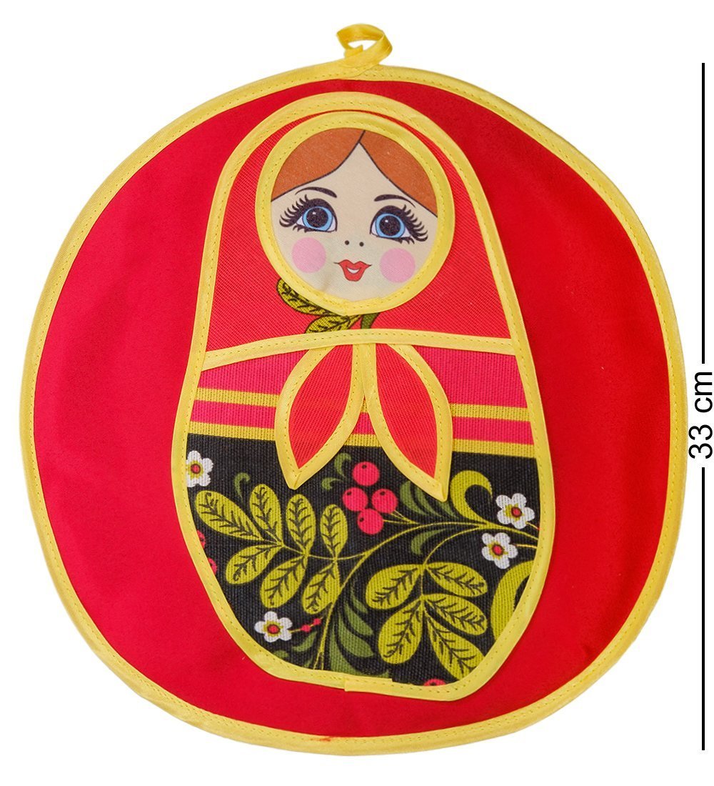 Прихватка для кухни – вещь необходимая. Ее обычно вешают поближе к печке и используют, когда надо быстро отставить с огня сковороду или кастрюлю, ручки которой лишком горячие, чтобы браться за них руками. Это обычно плотная материя, хорошо защищающая руки, но ее стараются всячески украшать, чтобы в интерьере кухни прихватка не выглядела неуместной, а хорошо подходила под мебель, шторы и под другие предметы интерьера. На этой прихватке изображена классическая русская матрешка, причем есть варианты – в синих тонах и в красных. Синяя прихватка более подойдет под холодный дизайн стиля хай-тек, красный цвет окажется более уместен в классическом деревянном интерьере.