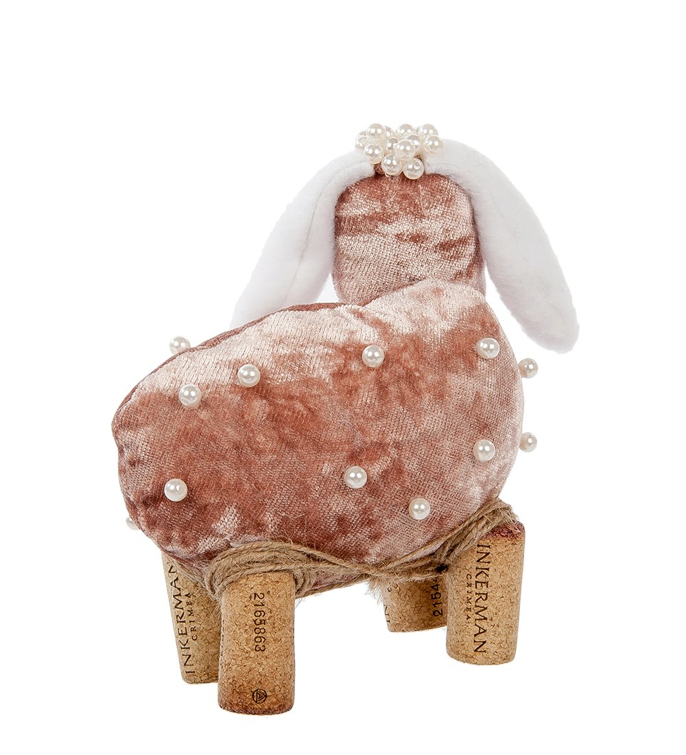 Пошить игрушку в стиле народного лоскутного творчества вовсе несложно: надо только иметь несколько обрезков материи разных цветов. Желательно плюшевой ткани, чтобы собачка имела подходящую для такой игрушки поверхность. Вместо ног здесь использованы упаковки от бутылок крымского вина, выполненные из прессованной пробковой крошки. Вместо глаз пришиты черные бусинки, рот вышит несколькими стежками нитки, как будто грубо нарисован. Ни на какое сходство с настоящей овечкой эта игрушка не претендует, да и служит она не в качестве игрушки для детей – это оригинальный элемент для современного интерьера, оживляющий вид комнаты.