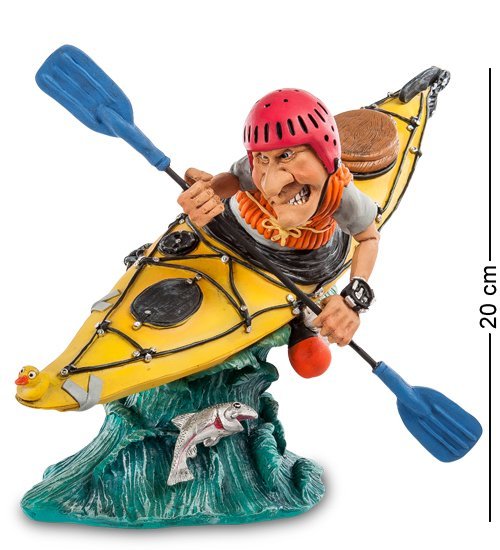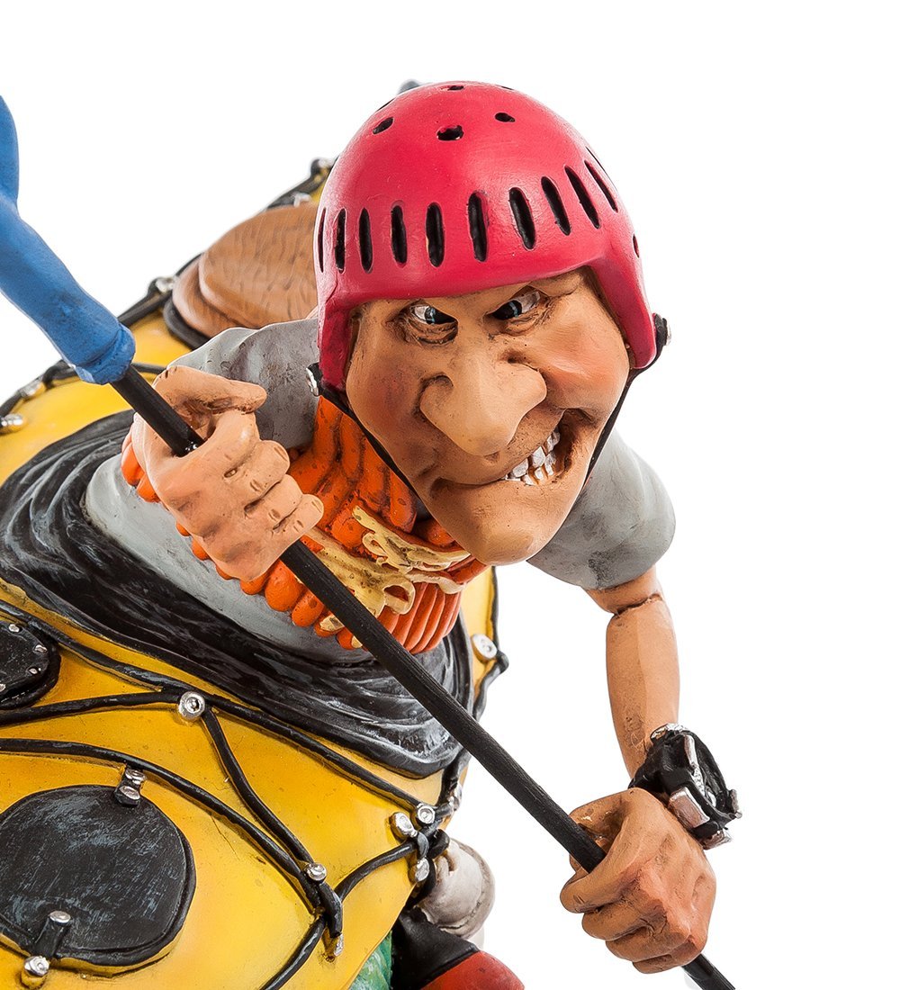 Смешная миниатюра, изображающая человечка, гребущего в байдарке, сделана с отличным чувством юмора, но при этом не лишена изящества. Как и прочие изделия из этой коллекции, выполнена фигурка очень бережно, с мельчайшими подробностями, и вот перед нами — отважный байдарочник, борющийся с течением в бурной реке.