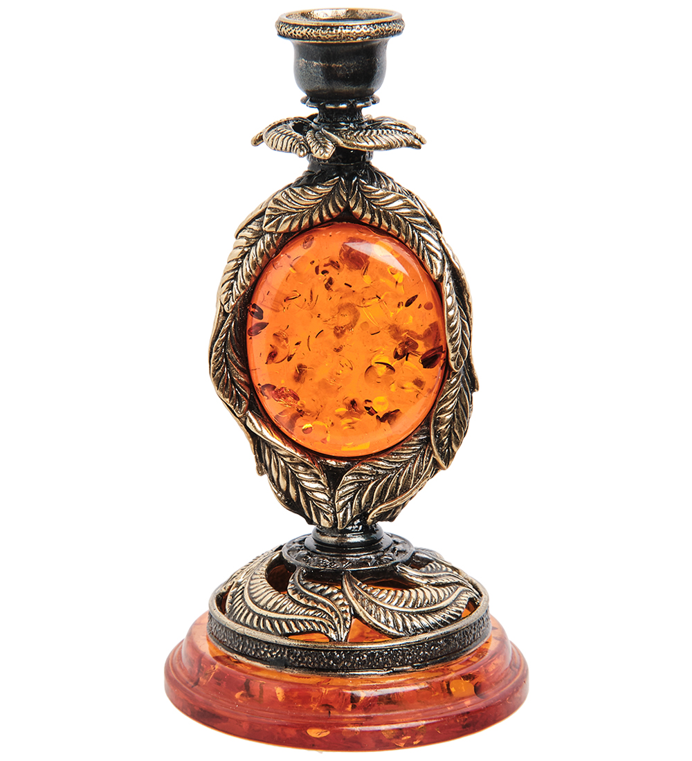 AM- 618 Подсвечник «Ива» (латунь, янтарь)
