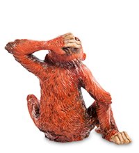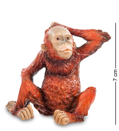 Детеныш неуклюже поставил переднюю лапу и задумчиво почесывает второй затылок, будто думая как бы ему достать фрукты с дупла на дереве. Рыжевато-красная шерсть, телесного цвета мордочка и пальцы. Статуэтка орангутанга - необычный и оригинальный подарок.