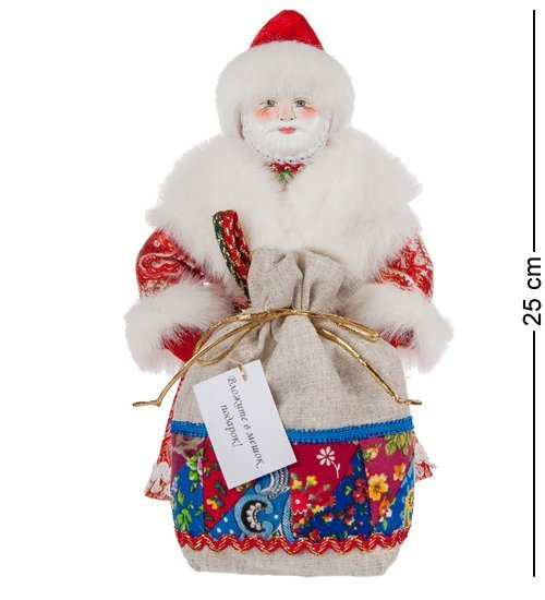 Кукла "Дедушка Мороз с мешком" - это подарок, который несет в себе частичку новогоднего чуда и рождественского волшебства. Обратите внимание на добрый взгляд дедушки - он принес с собой добрые вести и гостинцы для взрослых и детишек! Отличным решением дизайнеров стал мешочек для сюрприза в руках статуэтки - своеобразный подарок в подарке порадует ваших близких и принесет с собой море положительных эмоций и отличное настроение на весь год.
