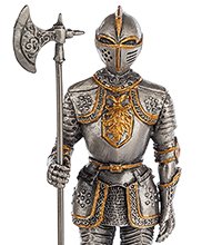 Фигурку «Рыцарь с алебардой» можно подарить другу, который любит старину, времена раннего средневековья и романы, рассказывающие об эпических сражениях давно минувших дней. Фигурка станет хорошим украшением комнаты, обставленной в старинном стиле, будет неплохо смотреться на небольшом столе или на каминной полке. «Рыцаря с алебардой» также можно поставить в домашний кабинет, библиотеку, или подарить знакомому военному офицеру.