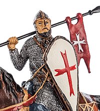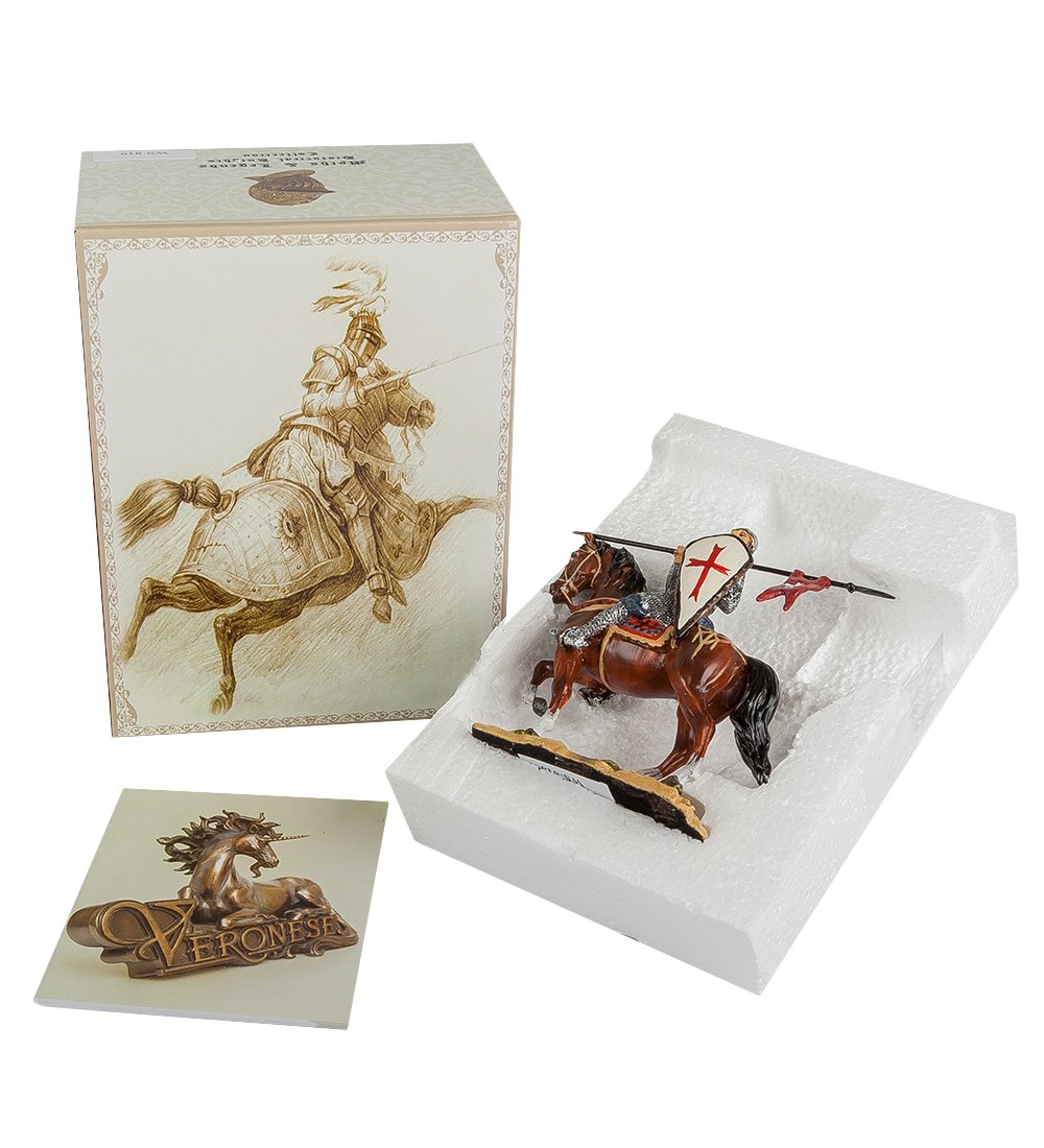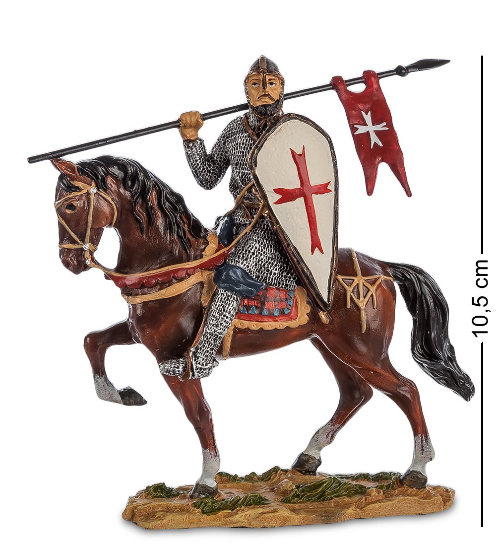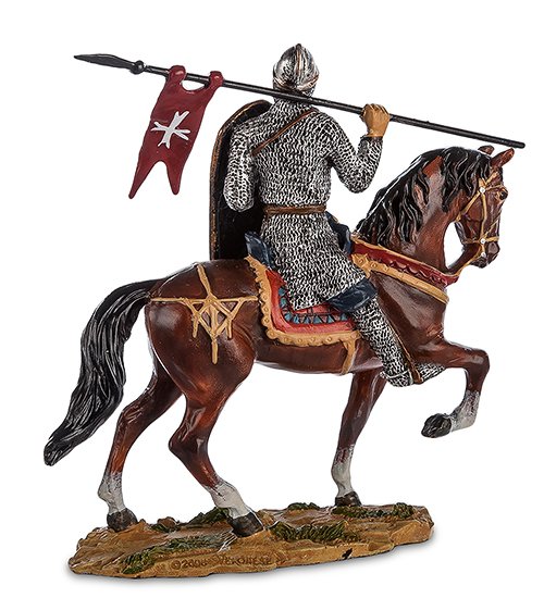 Хотя времена крестовых походов давно миновало и многие даже не представляют себе, с какой целью закованные в броню воины захватывали чужие земли, образ рыцаря-крестоносца часто появляется и в исторических романах, и в голливудских фильмах. Фигурка из полистоуна изображает крестоносца верхом на лошади: как известно, в тяжелой броне сложно передвигаться пешком, и большинство рыцарей предпочитали без особой нужды не покидать седло.