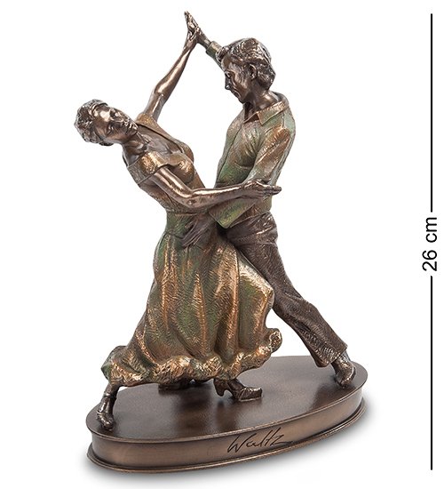 Фигурка «Вальс» демонстрирует пару танцоров-профессионалов; судя по фасону нарядов, они исполняют свой номер в начале прошлого века. Мужчина одет в танцевальные брюки и пиджак, партнерша – в длинное платье с декольте. Фигурка сделана из полистоуна, и в ней преобладают зеленые цвета. Статуэтку «Вальс» можно подарить на день рождения или юбилей, а также украсить ей актовый зал или библиотеку.