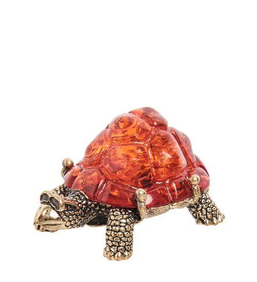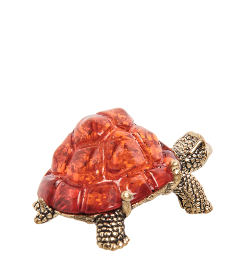 AM- 605 Фигурка «Черепаха сухопутная» (латунь, янтарь)