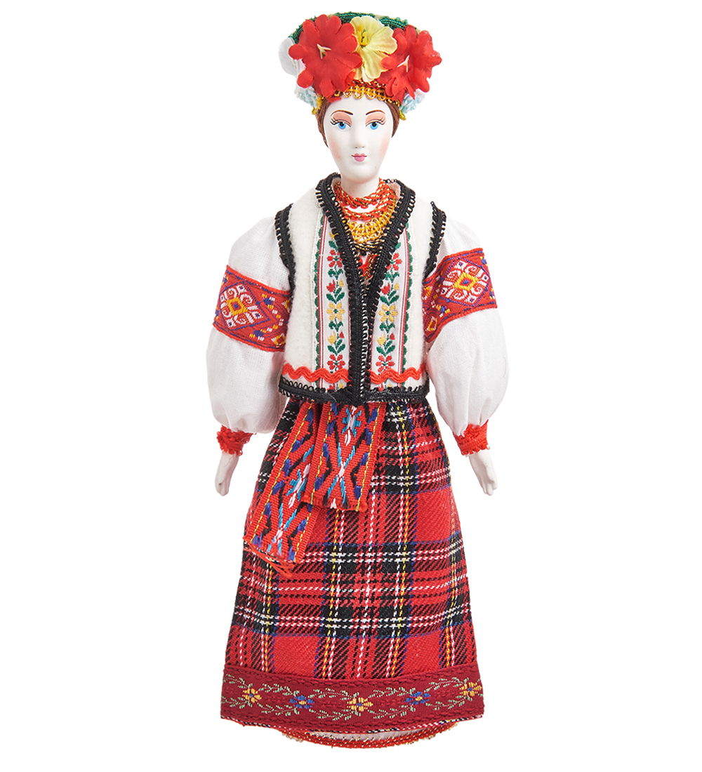 Это – костюм не на каждый день, издавна так только на праздники одевались. Но до чего же красиво девушке в этом узорчатом платье, с расписной жилеткой да с богатым головным убором с цветами да лентами. Пусть такой костюм всего лишь на кухне надет, все равно от одного взгляда на нее ощущение праздника возникает. Кукла в национальном костюме – превосходное украшение и отличный подарок для молодой женщины или для семейной пары. Ведь вы частицу праздника дарите!