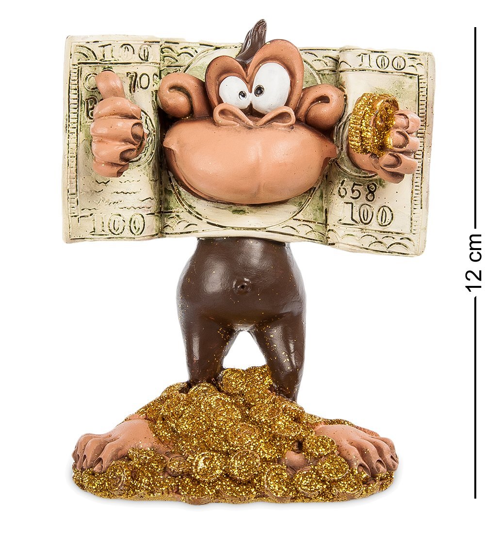 К тому же обезьянка подает хороший пример целеустремленности: она и лапами деньги хватает, и даже кончиком хвоста умудрилась зажать монетку. Можно подарить шуточную статуэтку человеку, который мечтает разбогатеть и готов для этого прилагать все усилия. Этот талисман ему наверняка поможет в достижении мечты.