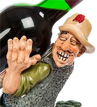 Вот теперь все стало на свое место: рыбак крепко сжимает бутылку, а на лице его потрясение размерами предстоящей выпивки: просил же у рыбки бутылку вина, но чтоб такую… У любого рыбака на праздничном столе должна стоять такая фигурка! И дарить ее надо с бутылкой в наборе!