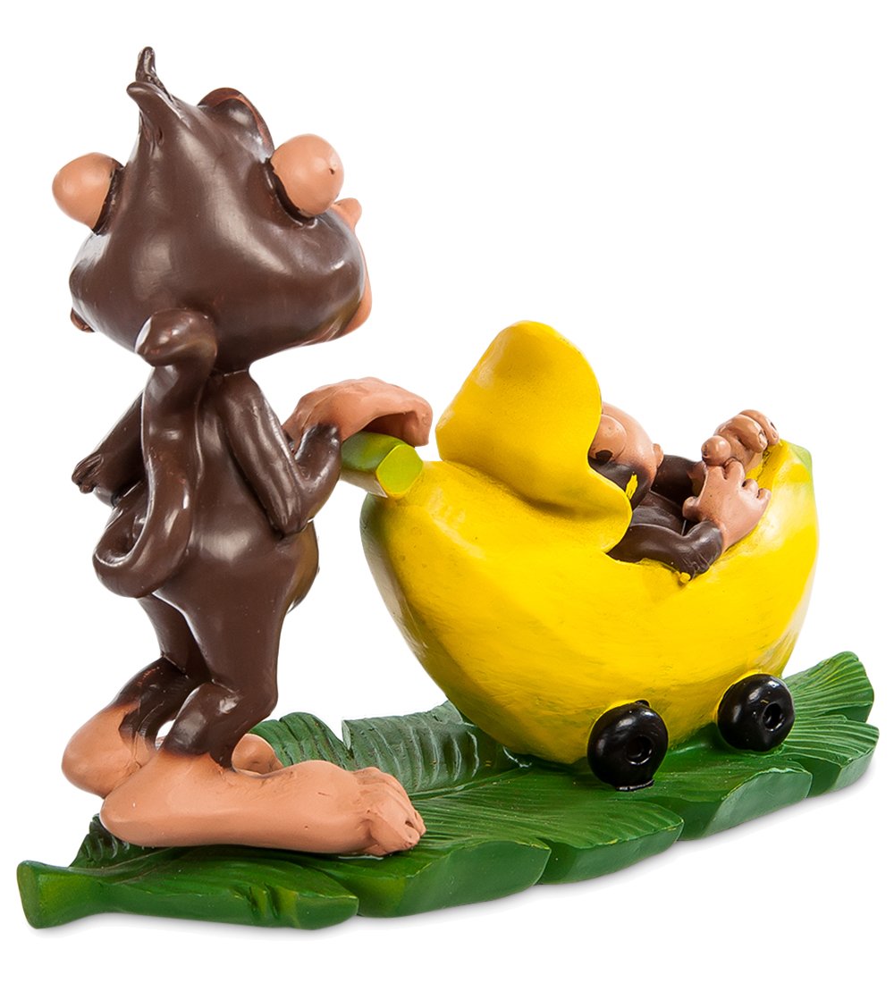 Забавная обезьянка вывезла в коляске на прогулку своего малыша. Обернулась на зов и внимательно смотрит: кто же ее отвлекает. Пора забирать у ребенка соску и кормить его молоком из бутылочки. Все как у людей, только эволюция немного задержалась. Это не детская игрушка, а вот будущей маме такой подарок явно придется по вкусу. Свой ребенок будет куда красивее, хотя так же похож на свою маму, как этот маленький детеныш – на свою.