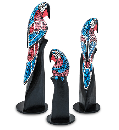 23-028-01 Н-р статуэток из трех «Попугай» дерево+стекл.мозаика (50,40,30 см)