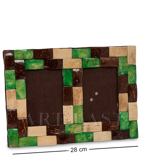 Размер двойной фоторамки с подставкой 20х28 см, размер каждой из 2-х фотографий 9х13 см. Декор из разноцветных кусочков кокоса в ассортименте.