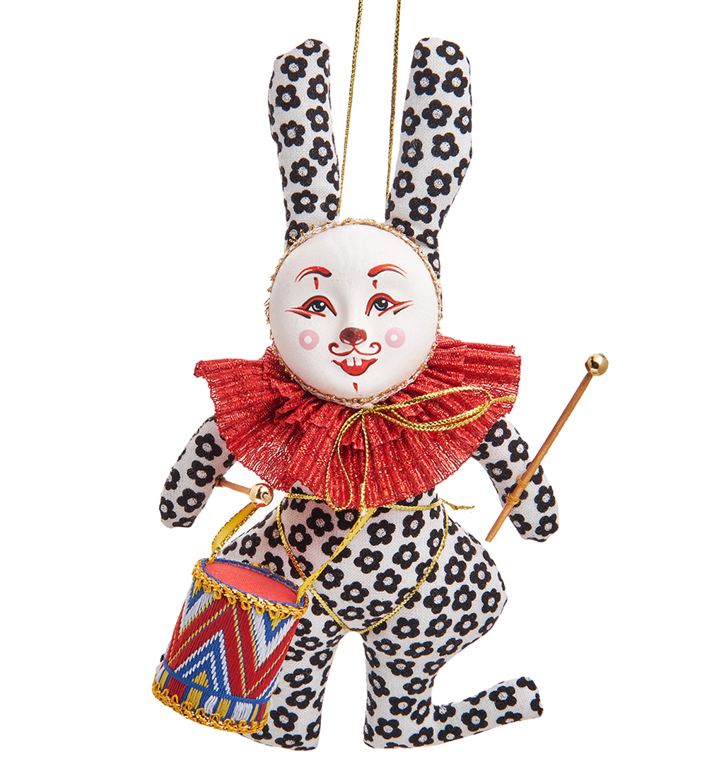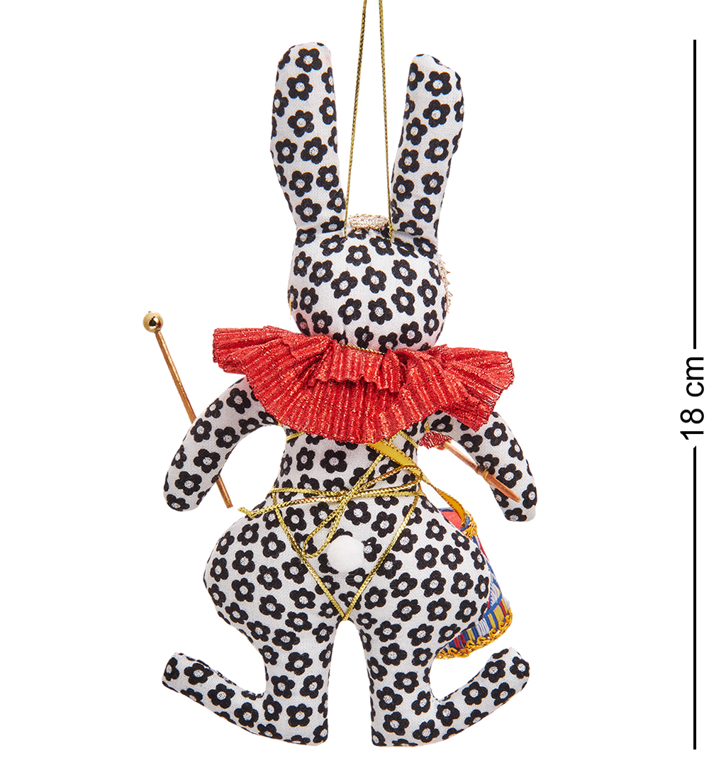 Кукла кролик с барабаном порадует вас своей красотой и выразительностью. Кролик невероятно милый, мастера постарались, когда работали над его оформлением. От него исходит сплошная позитивная энергия. Красные мелкие цветочки придают кукле удивительное обаяние. В цветовой гамме мы видим преобладание белого и красного цветов. А самый заметный элемент, который можно выделить на общем фоне – барабан с синими узорами.