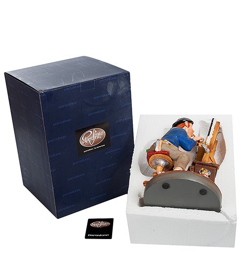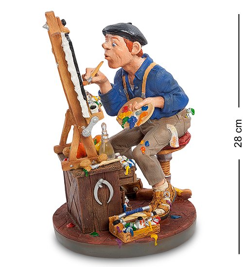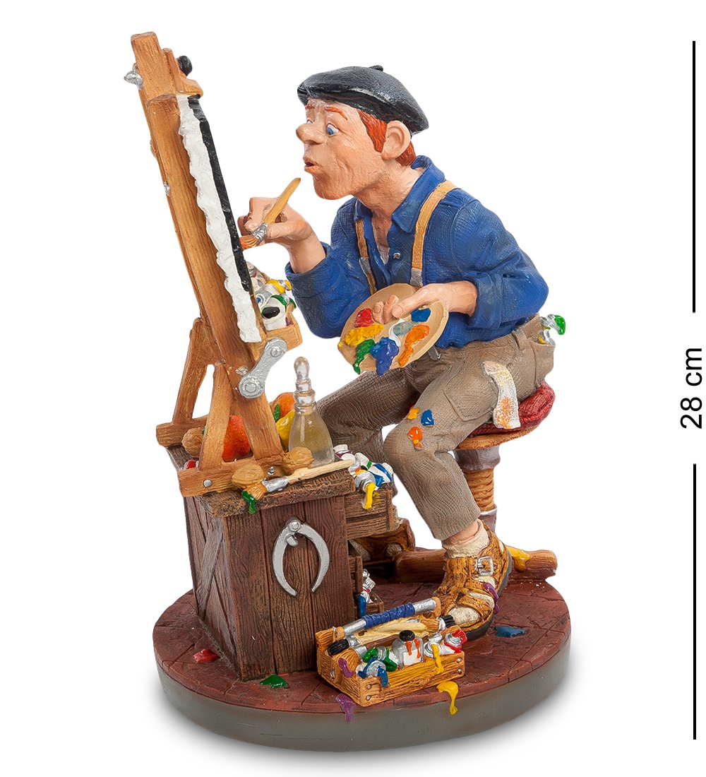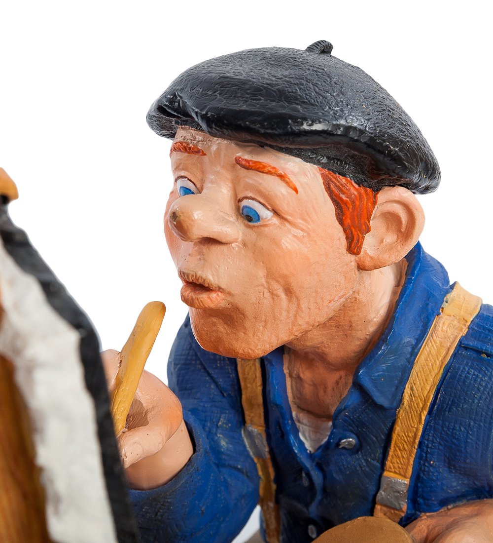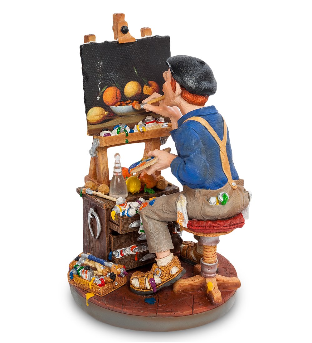 Шуточная статуэтка «Художник» посвящена творческим личностям. Автор миниатюры изобразил в ней настоящего мастера, который готов и днем и ночью трудиться на благо искусства. В данный момент художник работает над созданием натюрморта.