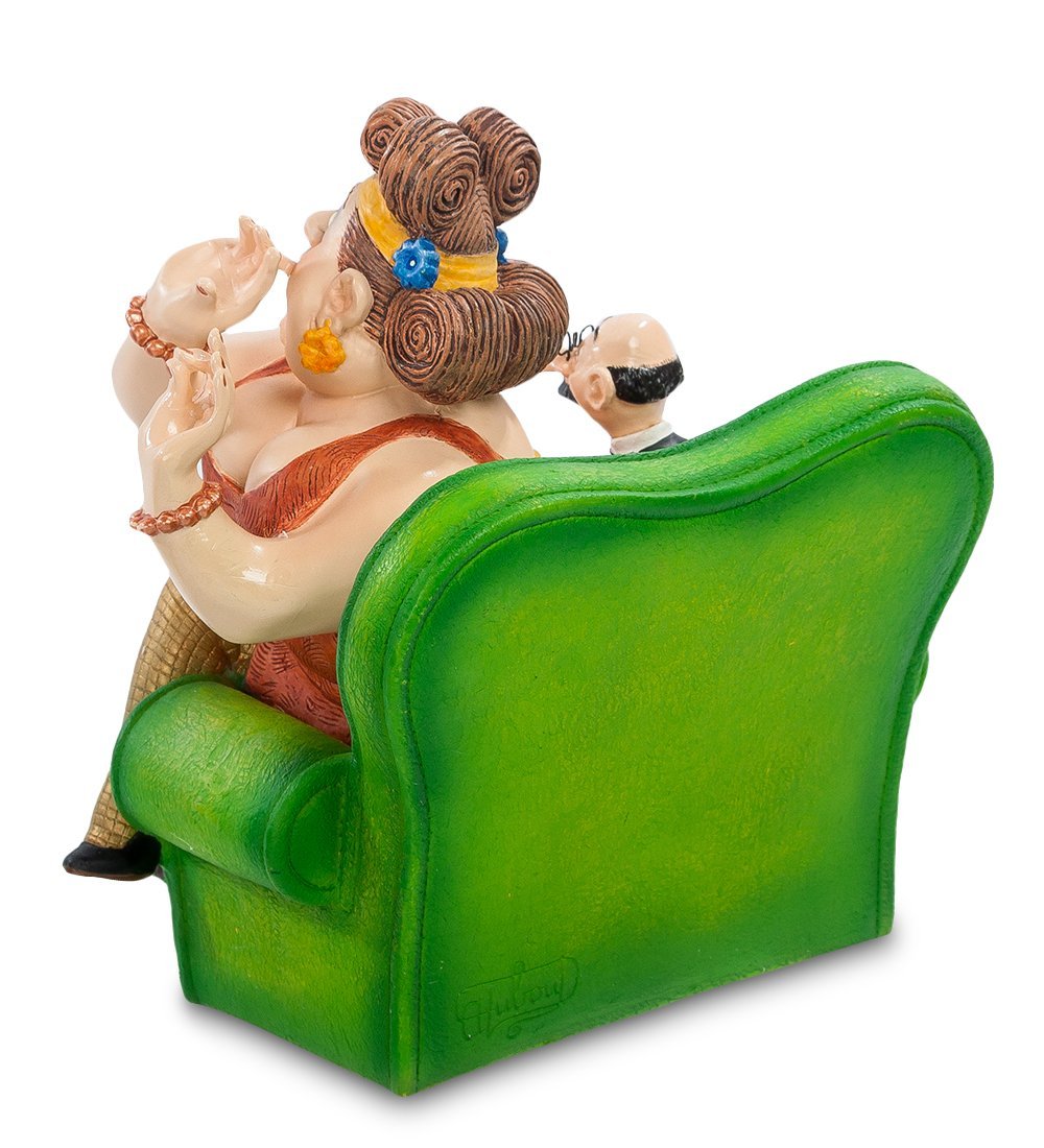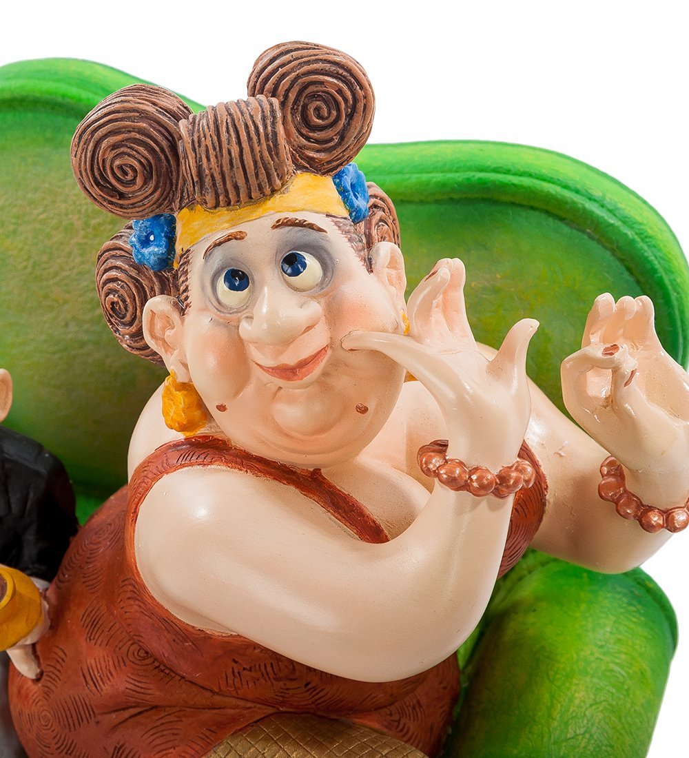 Каких только семейных пар ни бывает. Трудно представить себе более контрастную – огромных размеров женщина, занявшая почти весь диван, и миниатюрный мужчина. Модница, всячески себя украшающая и скромный супруг, типичный бухгалтер по внешности.