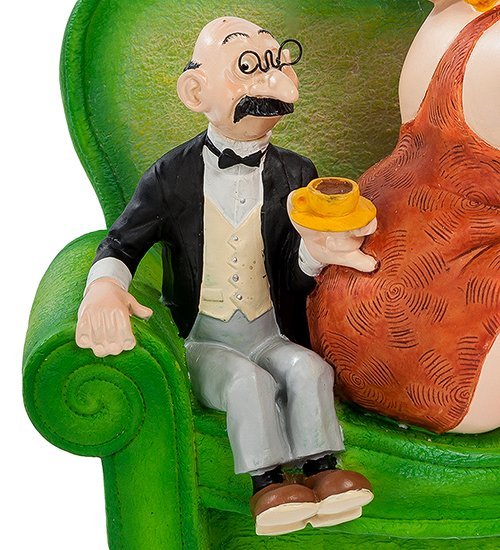 И вот представьте – живут вместе, в любви и радости, и муж всегда готов принести своей любимой чашечку кофе. Такая композиция парадирует многих, имеющих очень разные комплекции, супругов, напоминая: дарите друг другу свою любовь, как эту чашечку кофе.