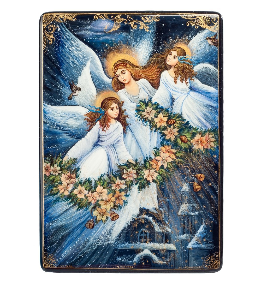 Рисунок может незначительно отличаться от изображенного на фото, т.к. изготовление шкатулки и роспись делаются мастером вручную.