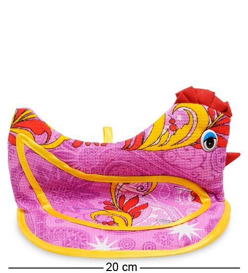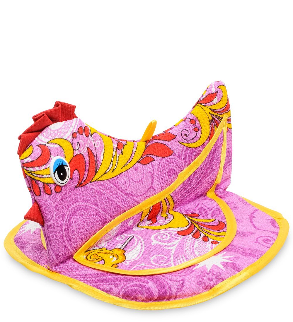Прихватки на кухне – это средства защиты рук от горячих частей кухонной посуды. Используя пошитую из теплозащитной ткани прихватку можно для того, чтобы снять с огня кастрюлю или сковороду, если они не снабжены пластиковыми ручками. Поскольку прихватки должны постоянно быть на виду, рядом с печкой, их стараются делать яркими, броскими, хорошо заметными и при этом соответствующими общему интерьеру помещения. Эта прихватка изготовлена в форме курицы в стиле народных традиций лоскутного шитья, из ярких цветастых тканей. Такое оформление входит в моду, и дизайнеры охотно включают подобные текстильные элементы в общий интерьер кухни.