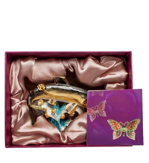 Необычная шкатулка "Лосось" придется по душе всем любителям путешествий и активного образа жизни. Обратите внимание, как точно выполнены детали фигурки, как грамотно подобран цвет. Вкрапления позолоты придают необыкновенному изделию по-настоящему царский вид. Такой подарок обязательно будет оценен по достоинству - не упустите возможность порадовать своих родных и друзей!