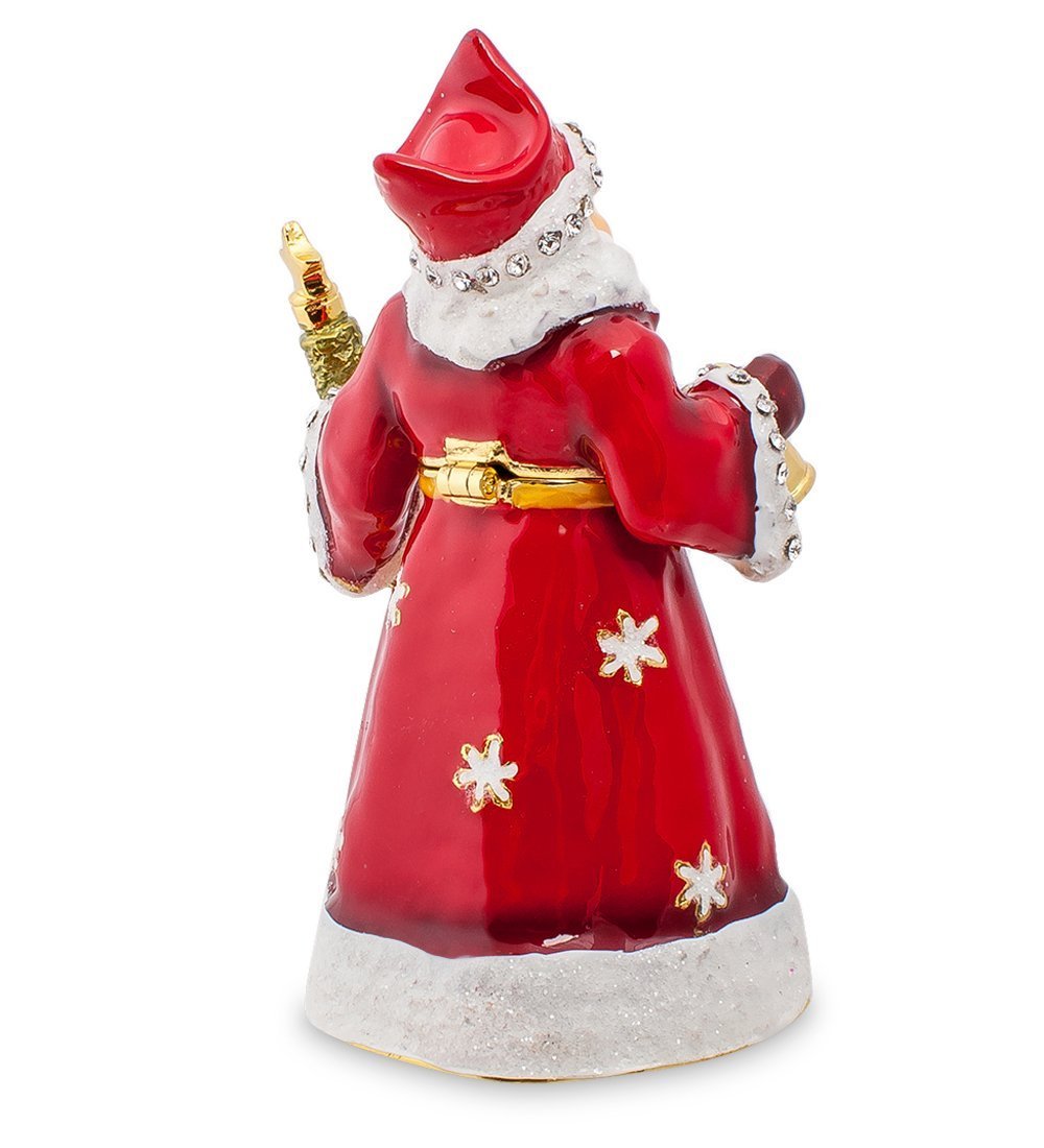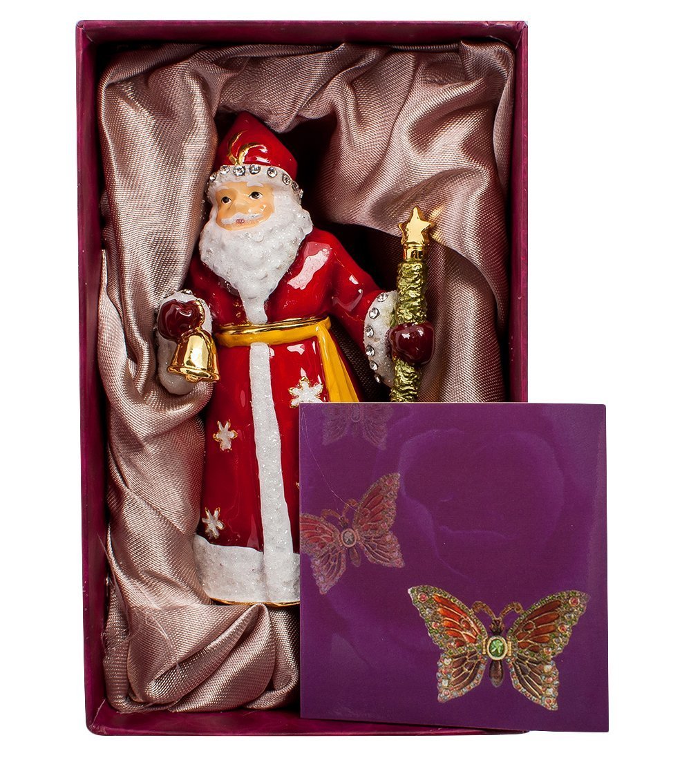 Шкатулка "Дед Мороз", выполненная с особым изяществом и мастерством, переносит нас в чудесный мир зимней сказки и исполнения желаний. Удачное соотношение красного, белого и позолоты, в сочетании с добрым взглядом персонажа, приносит с собой ощущение праздника. Кажется, еще немного, и дедушка зазвонит в свой колокольчик, достанет с плеч большой мешок и начнет раздавать подарки. Не сомневайтесь, такой презент порадует как взрослых, так и детей!