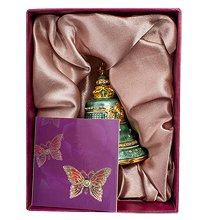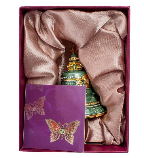 Оригинальная шкатулка "Царь-колокол" придется по душе даже самым искушенным знатокам. И это неудивительно - вы только взгляните, с какой реалистичностью и изысканностью выполнено изделие. Гармоничное сочетание насыщенного зеленного оттенка и позолоты радует глаз, а вкрапления кристаллов придают особый королевский шик.