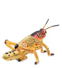 Кто бы ни увидел на вашей полке этого крупного 8-сантиметрового кузнечика, внимательно смотрящего на вас большими глазами и нацелившего в вашу сторону свои усики, обязательно захочет присмотреться поближе. Видно, что это – не живое существо: не бывает кузнечиков, инкрустированных кристаллами.
