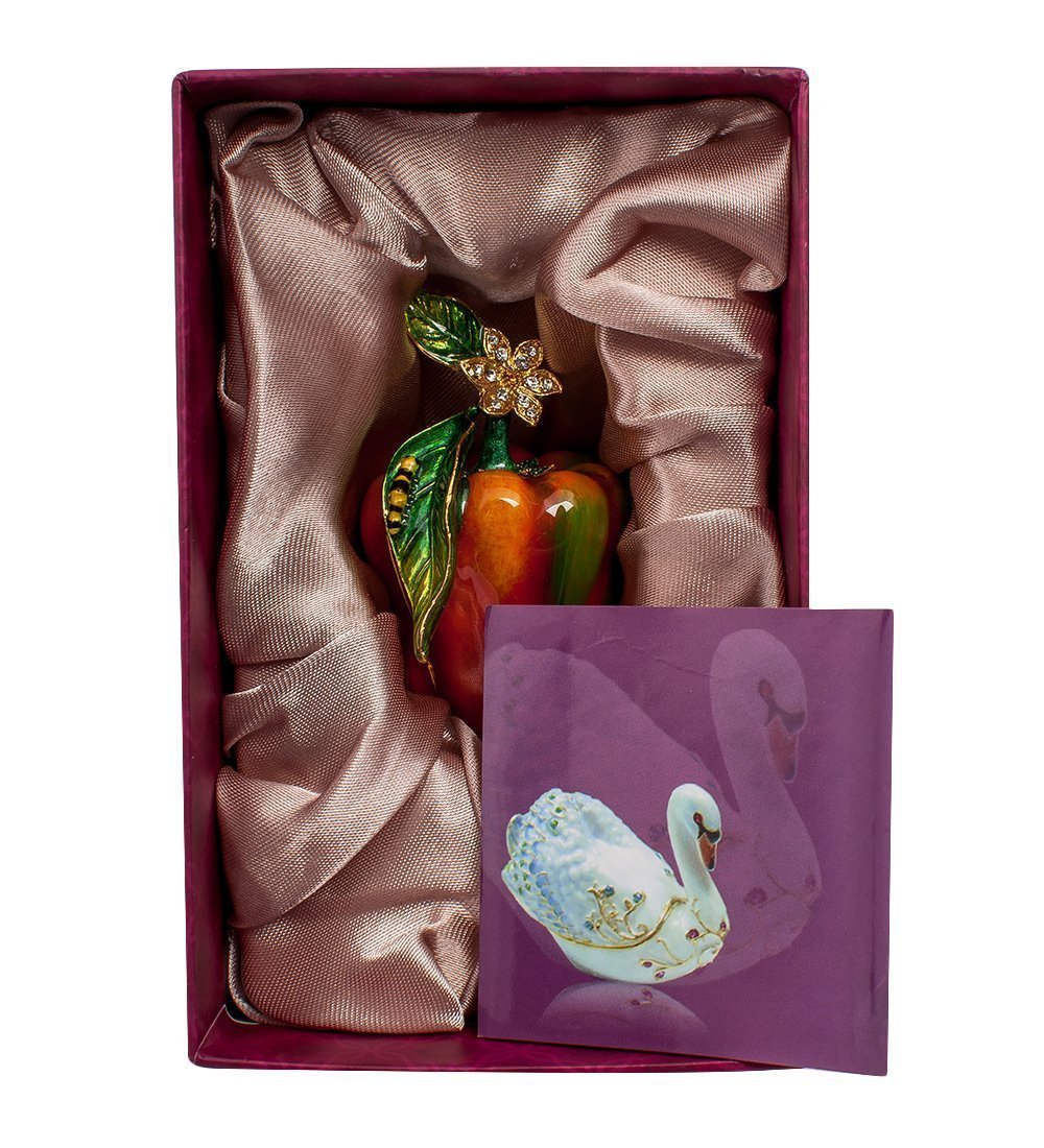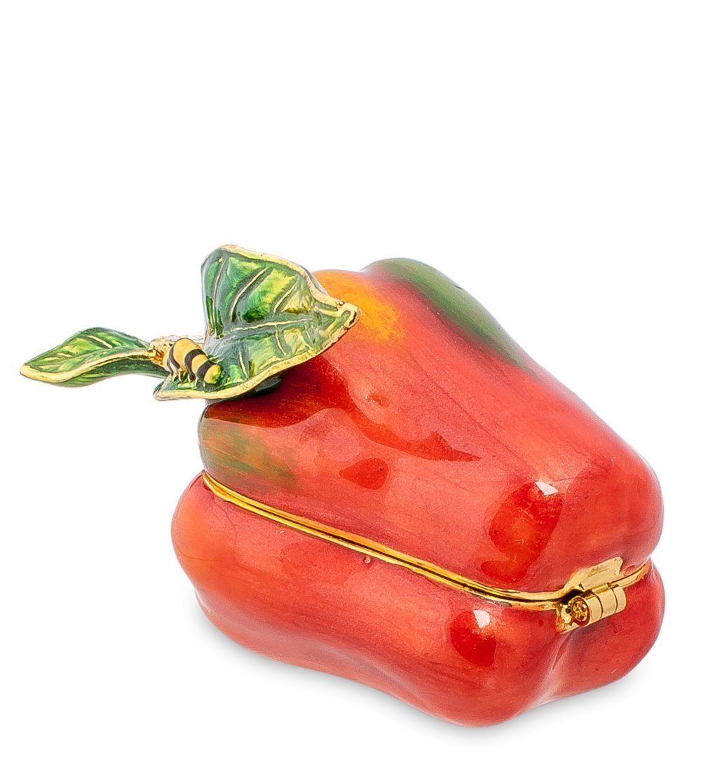 Но можно не бояться – никакого вреда этот червячок причинить не сможет – он такой же искусственный, как и этот красивый овощ. Перчик разделяет пополам полоска – линия разъема: верхняя половина снимается и открывает пространство небольшой шкатулочки, в которой чрезвычайно удобно хранить небольшие украшения, чтобы они не валялись где попало, а были сосредоточены в одном месте и были при этом всегда под руками.