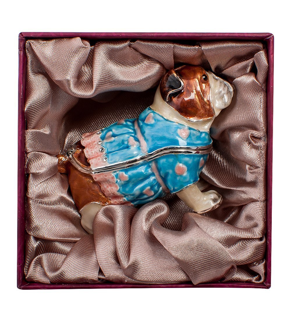 Это все же не настоящая псина, а всего лишь миниатюрная статуэтка, имеющая еще одно, тайное назначение: верхняя часть туловища откидывается на петле, и в открывшееся пространство, как в шкатулку, можно спрятать какие-то мелкие ценные вещицы. Например, сережки, которые вы надеваете каждый день: они всегда будут на месте, легко доступны, а маленькая бульдожка обеспечит их хорошую охрану.