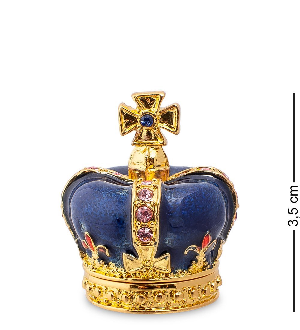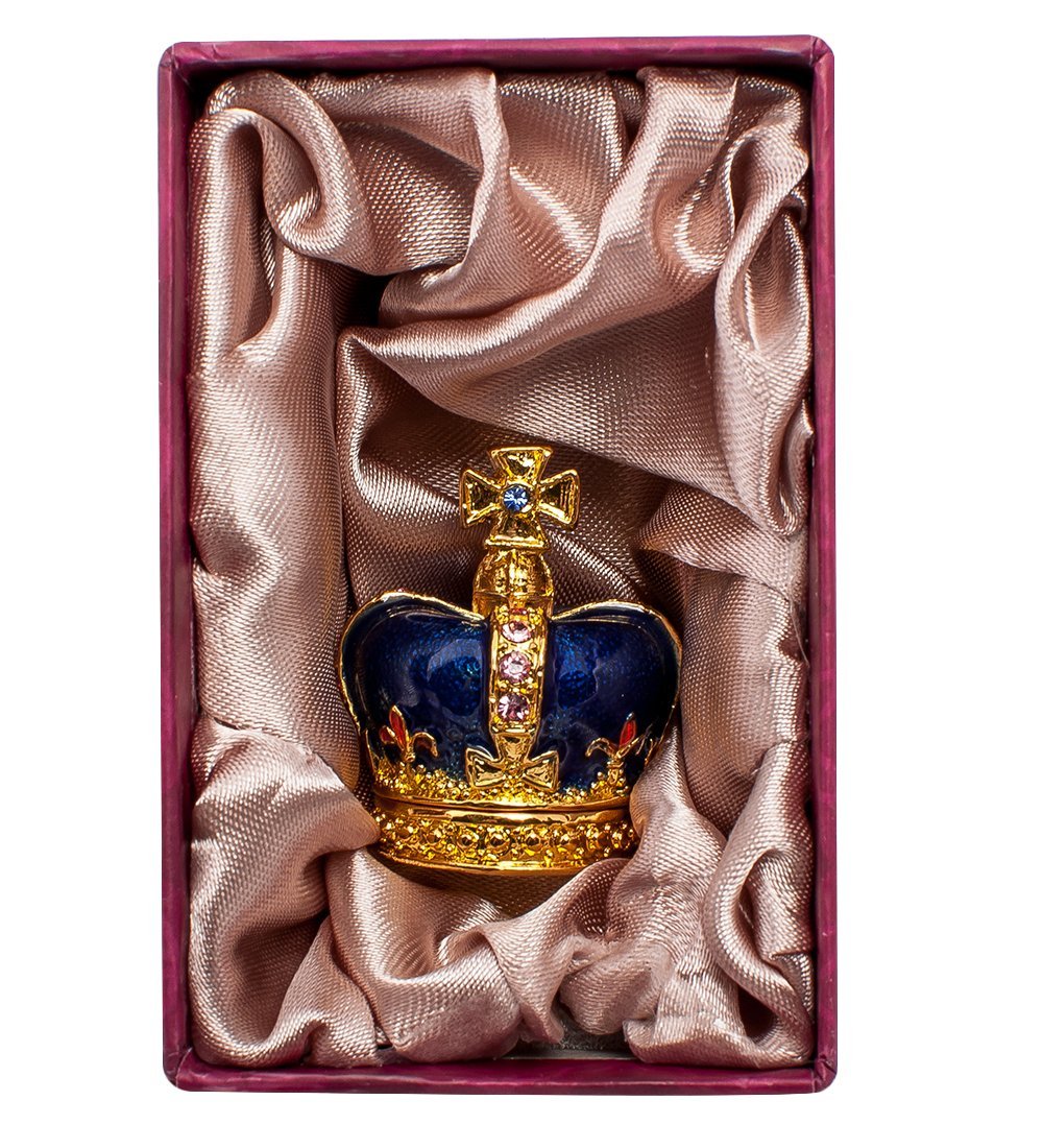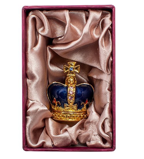 Шкатулку в виде царской короны по праву можно назвать самым роскошным и элегантным интерьерным украшением. Дизайн изделия в точности повторяет дизайн главного королевского атрибута. Несмотря на то, что шкатулка выполнена из металла, кажется, что мастер создавал ее исключительно из драгоценностей. Поверхность этого аксессуара украшена яркими камнями, позолоченными вставками, рельефными узорами и стразами.