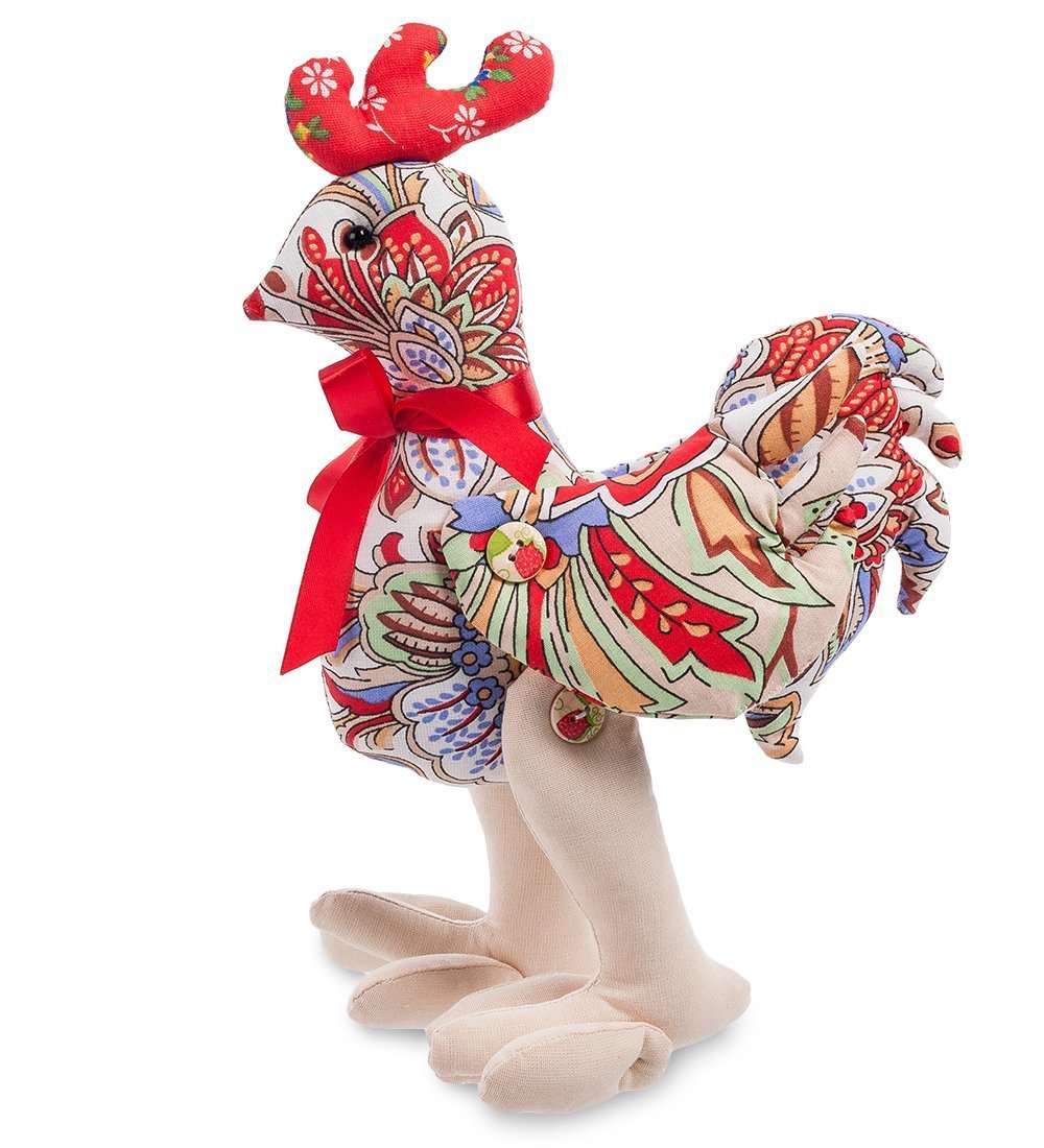 Когда в старину в доме накапливались обрезки разных тканей, оставшихся после пошива одежды, из них шили игрушки для детей – яркие, пестрые, разноцветные. Ткани тогда делали с разными узорами, чаще всего цветочными, вот и получались неожиданные цветовые сочетания. Эта подборка петушков сделана по одной выкройке, хотя на их изготовление пошли разные ткани. Общее только одно: на голове – роскошный гребень, выполненный из красной ткани. Сегодня лоскутное шитье вошло в моду, но не для детей предназначены такие куклы: их назначение – создавать в современном интерьере гостиной или спальни яркий штрих, привлекающий внимание.