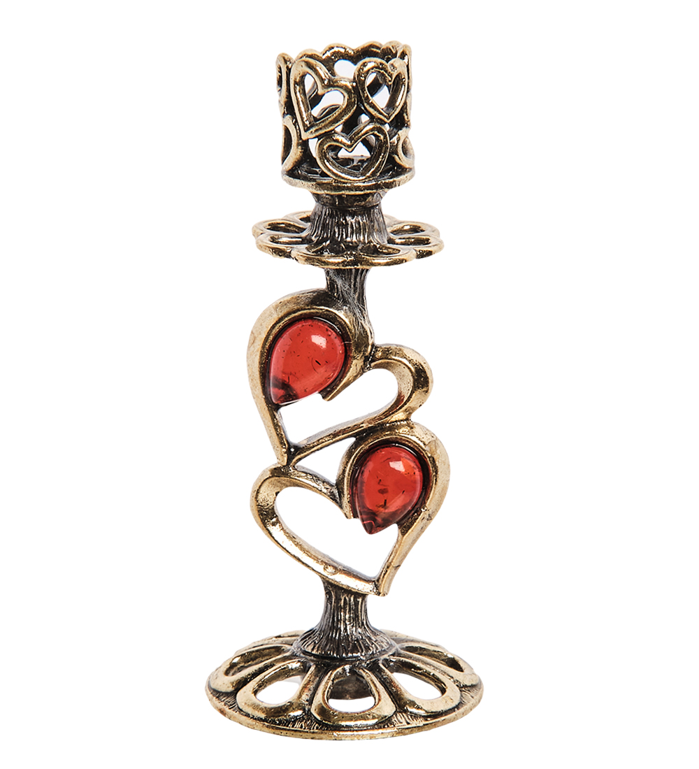 AM- 786 Подсвечник «Сердца» (латунь, янтарь)