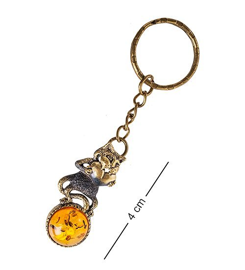 AM- 831 Брелок «Кот с сердцем» (латунь, янтарь)