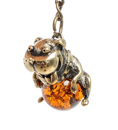 AM- 861 Брелок «Собака» (латунь, янтарь)