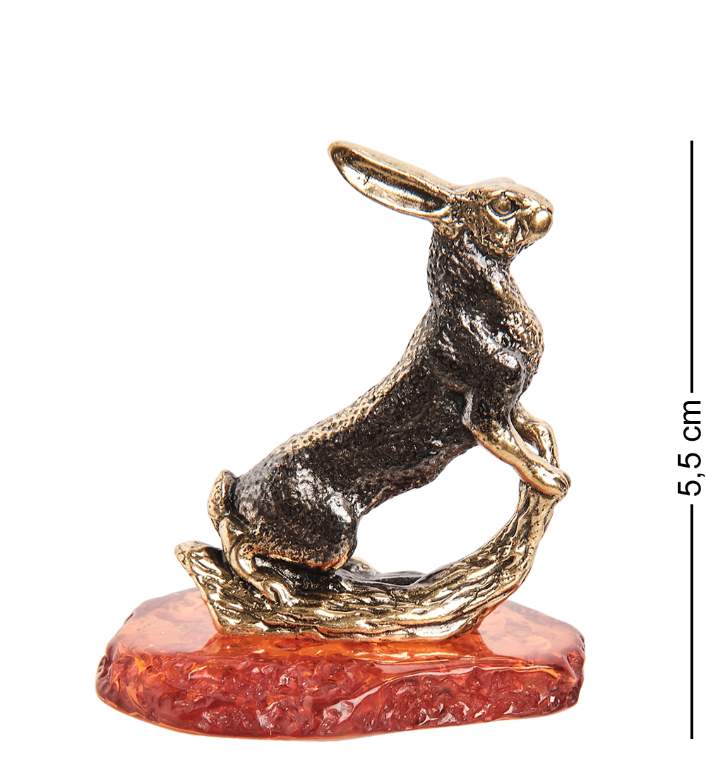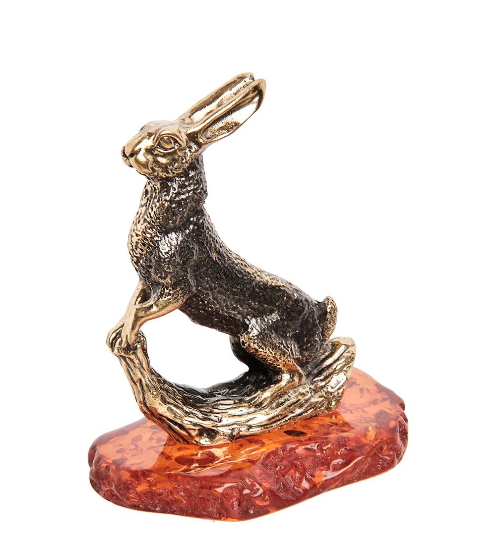 AM- 981 Фигурка «Заяц Беляк» (латунь, янтарь)