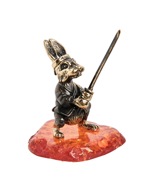 AM- 984 Фигурка «Заяц Самурай» (латунь, янтарь)