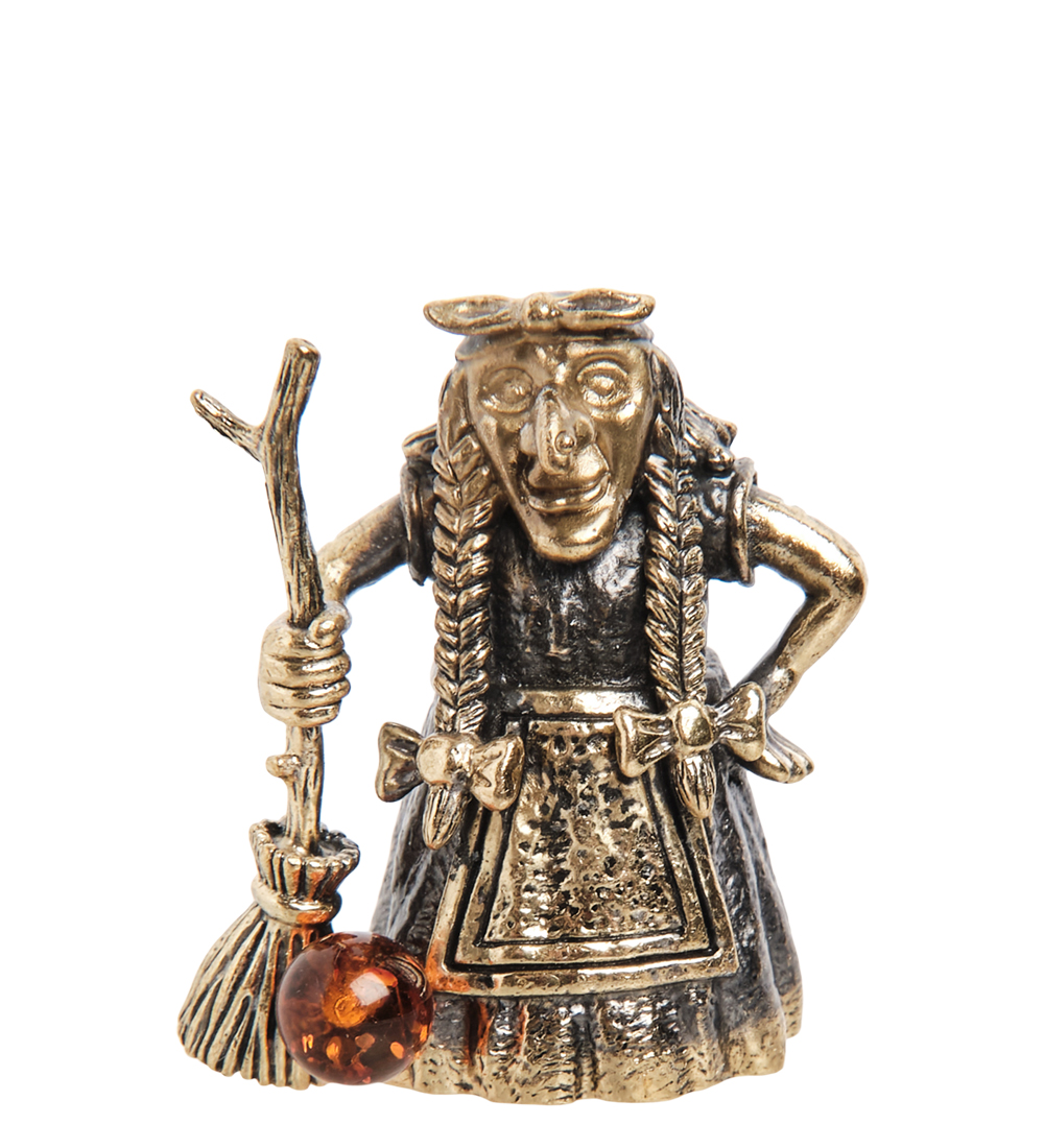 AM-1000 Фигурка «Колокольчик Бабуся-Ягуся» (латунь, янтарь)