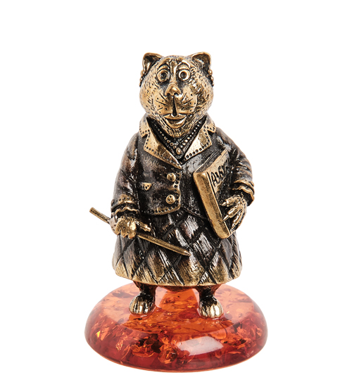 AM-1010 Фигурка «Колокольчик-Кошка завуч» (латунь, янтарь)