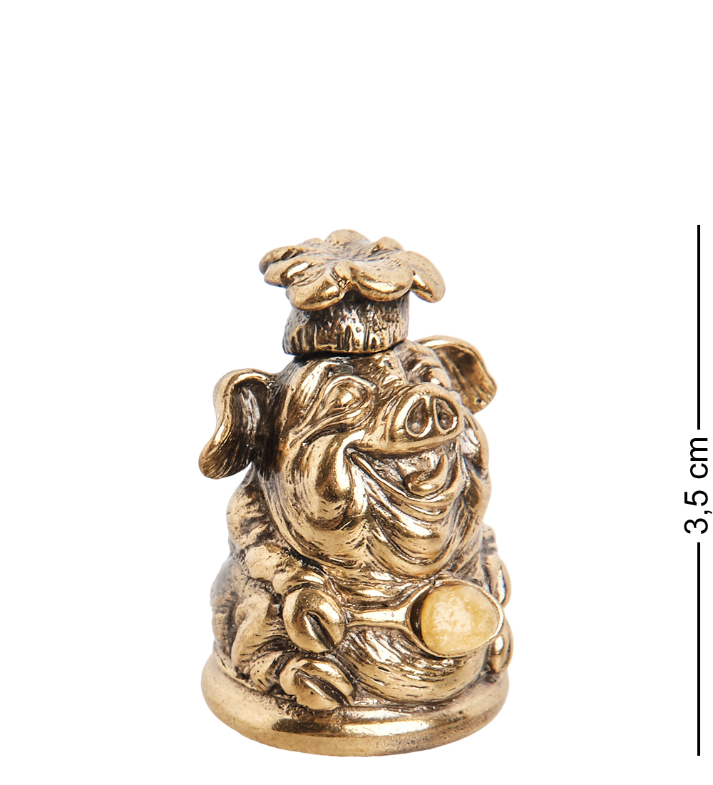 AM-1019 Колокольчик «Поросенок-поваренок» (латунь, янтарь)