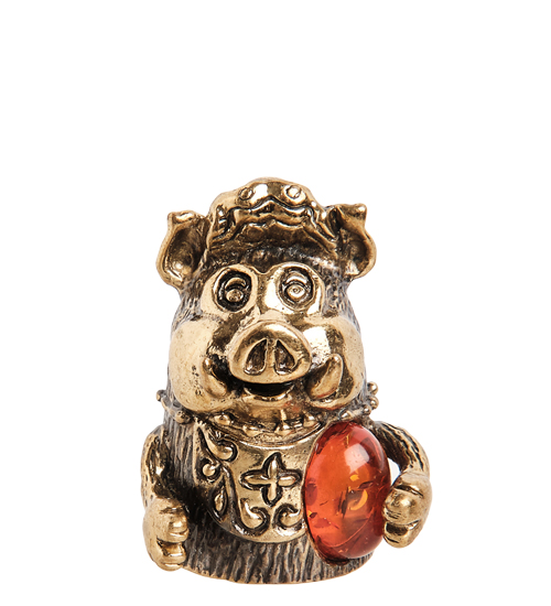 AM-1022 Фигурка «Колокольчик-Хавронья Буфетчица» (латунь, янтарь)