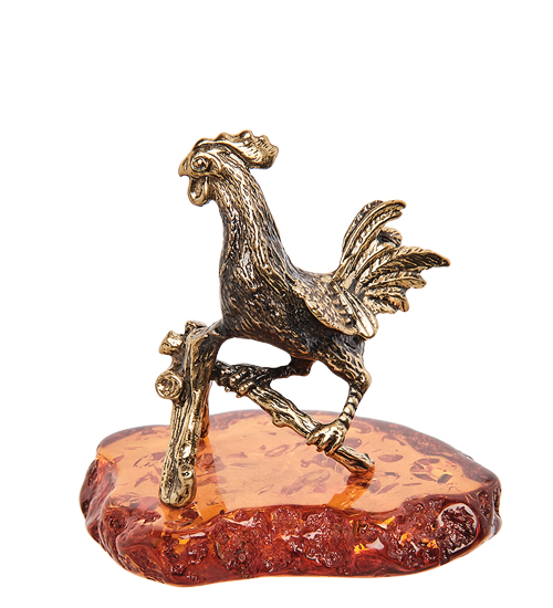 AM-1247 Фигурка «Петух Рассвет» (латунь, янтарь)
