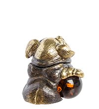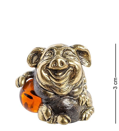 AM-1338 Фигурка «Поросенок с шариком» (латунь, янтарь)